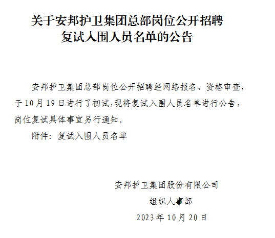 关于线上赌博 总部岗位公开招聘复试入围人员名单的公告