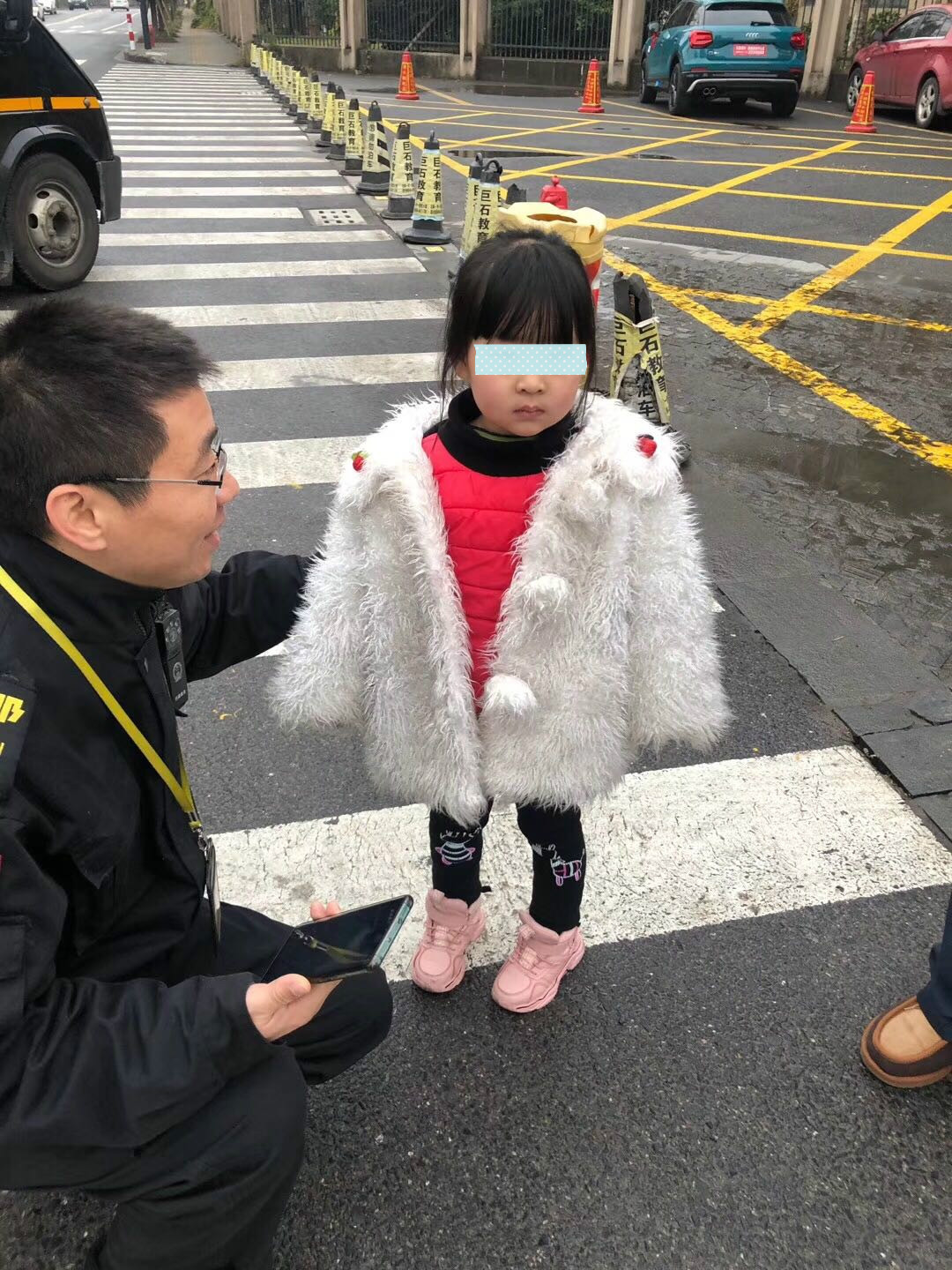 12月19日上午9时左右,浙江湖州安邦护卫有限公司员工刘志文、鲁海斌在执行任务至月河小学浮玉校区附近时,发现一名小女孩正独自来回穿梭在马路中间,路上车辆来来往往非常危险。