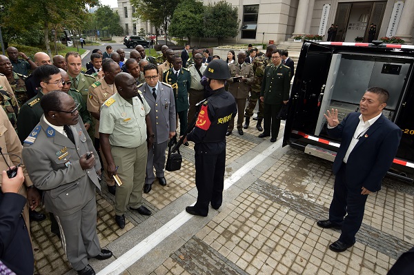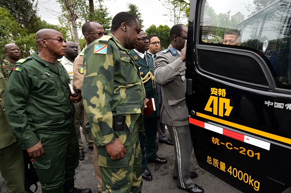 非洲各国高级军官现场观摩了浙江线上赌博 武装押运车辆和装备,对线上赌博 规范化、标准化、专业化的武装押运装备和管理体系给予了高度的赞扬,激发了浓厚的兴趣。