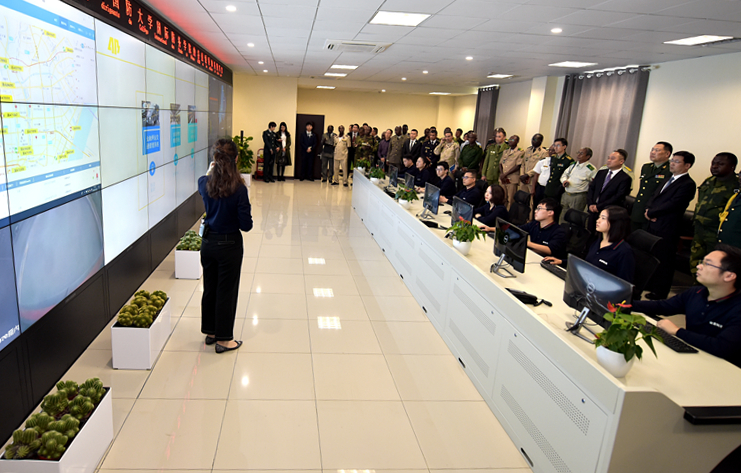 在数据管理中心,非洲各国高级军官观摩了线上赌博 智慧金库管理平台、智慧交通管理平台、涉案财物保管平台等智慧安防的实时数据图像传输和安防大数据分析,对线上赌博 智慧安防建设叹为观止。