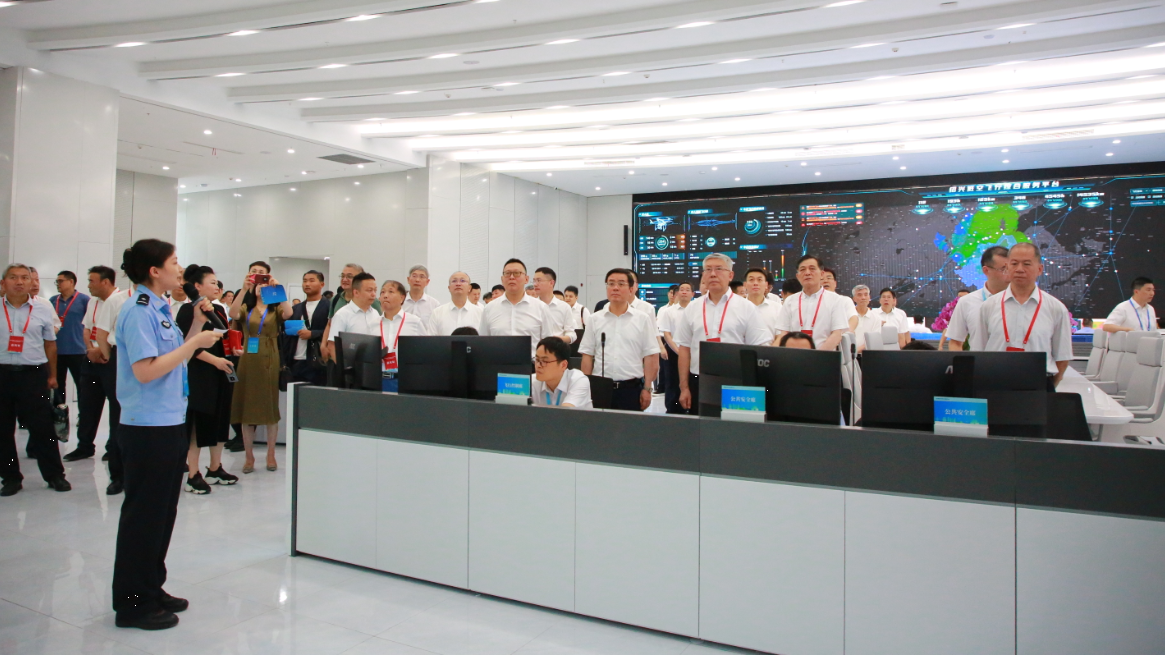 仪式结束后,领导和嘉宾到展厅观摩了公司自主开发的新能源远程识别基站、物联网融合基站以及“一机一码”等基础信息采集设备。