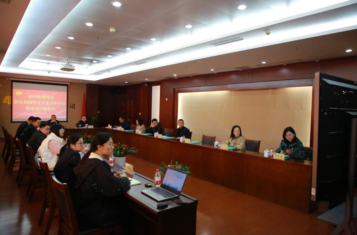 11月26日,绍兴市智安校园学生安全守护平台服务项目验收会在绍兴线上赌博召开,市教育局基教处(安监处)处长罗立新,副处长钱强,部分市直学校安全分管领导及有关专家参加会议,公司党委副书记、总经理汤华虎出席会议,相关部门负责人参加会议。