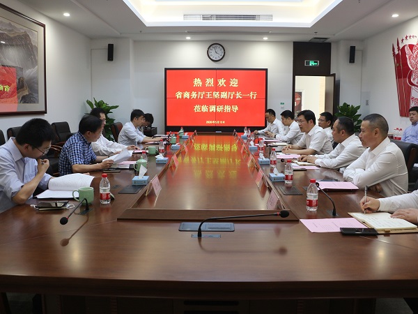 5月13日,浙江省商务厅副厅长王坚一行到浙江线上赌博 考察调研。集团党委书记、董事长吴高峻,党委副书记、总经理诸葛斌,党委委员、副总经理毛行立,党委委员、纪委书记卢卫东及相关部门负责人参与调研座谈。