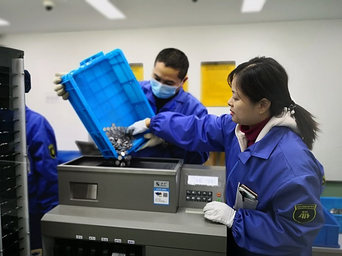 团队紧紧围绕建设区域现金处理中心目标不断进发,公司现金服务中心已经取得现金清分的专用行号和专门机构号,并纳入“同城金融网”系统,通过冠字号同步流转,实现与人行、商业银行的清分互通互认机制。同时,加大现金清分的科技应用,全面实行代理出入库金融机构系统预约缴款功能,实现待清分整点现金数据存储、统计、信息反馈等电子化运行与联动。公司清分中心实行按质按量计酬考核改革后,工作效率不断提升,日清分能力达2亿元。共承接28家银行的现金集中清分业务,年清分现金额近300亿元,占全市现金量的68%。2020年底,公司已全面开展硬币集中清分工作,日均清点硬币3-5万枚。