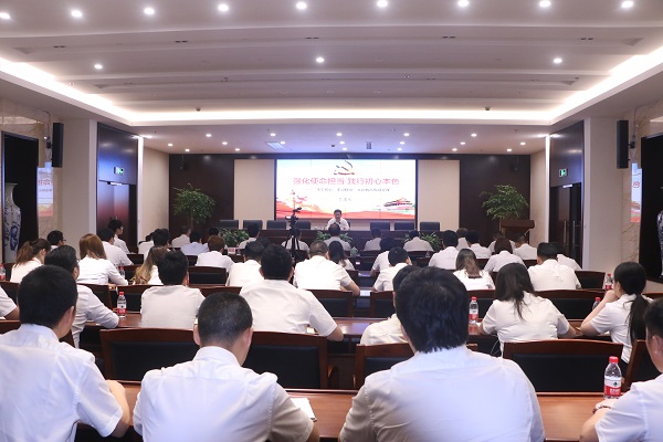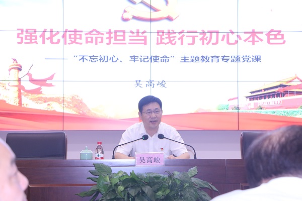 7月5日下午,根据省委“不忘初心、牢记使命”主题教育的部署和集团党委的安排,集团党委书记、董事长、集团主题教育领导小组组长吴高峻带头为集团党员干部讲授专题党课,强调要强化使命担当,践行初心本色,落实决策、化解矛盾、推动工作。省委第十八巡回指导组组长谢力群,省委组织部干部三处副处长、指导组联络员李优锋一行到会指导。