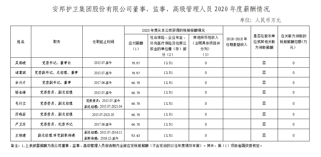 线上赌博 董事、监事、高级管理人员2020年度薪酬情况