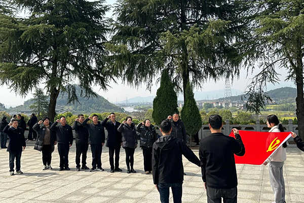 机关党支部、交通服务联合党支部齐聚衢州三山公墓烈士陵园,向纪念碑敬献鲜花,肃穆默哀,深切悼念为革命事业前赴后继、英勇献身的革命烈士,表达对烈士们的敬仰和缅怀之情。在庄严的革命烈士纪念碑前,全体党员面对党旗,紧握右拳,用铿锵有力的声音重温入党誓词,坚定理想信念,积极接受党的革命传统和爱国主义教育。