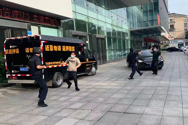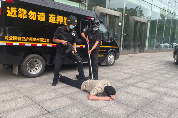 为进一步掌握款箱交接装卸作业时遇歹徒抢劫的处置方法,提升应急处置能力,6月8日下午,浙江衢州安邦护卫有限公司守押中心与杭州银行衢州分行开展押运防抢应急处置联合演练。
