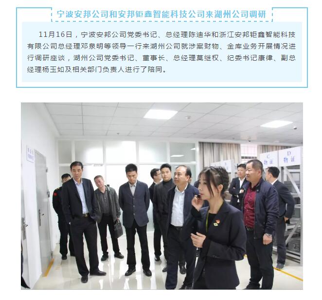 宁波安邦公司和安邦钜鑫智能科技公司来湖州公司调研