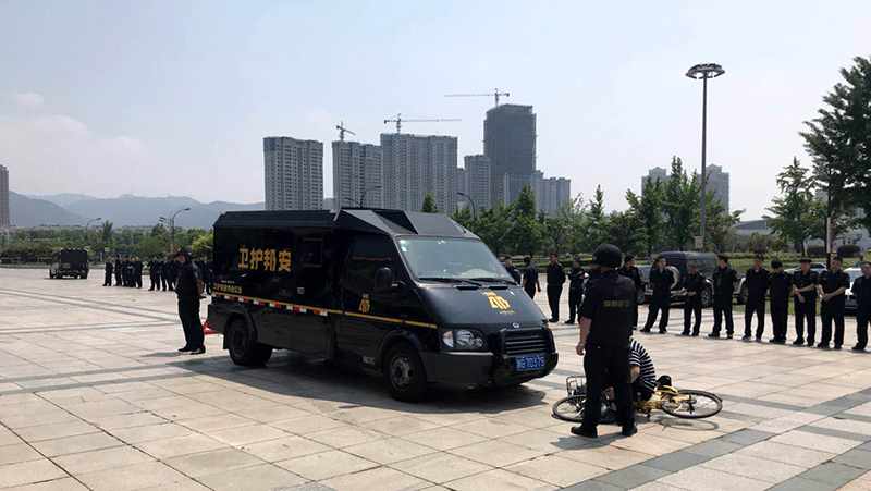 为确保日常守押安全,提高员工安全意识和应急事件处置能力。4月25日中午,金华安邦公司义乌守押大队组织所辖6个中队,在义乌市梅湖体育中心举行各类应急预案演练,大队长陈林森现场观摩并作点评。