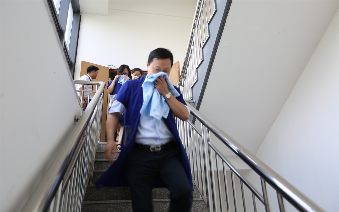 上午9点,消防应急逃生演练在公司14楼正式开始。当楼道烟雾弥漫,火警铃声立即响起,公司消控室接警后,后勤部门立即采取措施施救,公司员工和银行人员按照应急预案排队有序下楼,并用湿毛巾捂住口鼻防止烟雾吸入。随后,在公司6楼会议室,公司相关部门与中行绍兴市分行负责人进行桌面推演,向银行展示公司应对此类应急事件的具体操作流程和所做的充分准备,银行相关负责人对公司应对此类事件所做的努力表示满意。