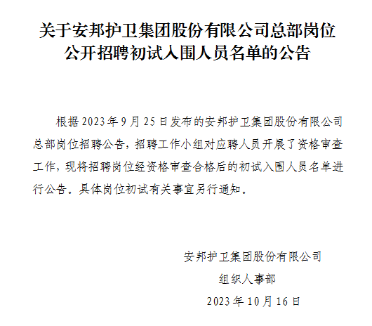 关于线上赌博 总部岗位公开招聘初试入围人员名单的公告