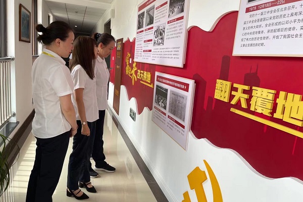 党史文化长廊以红色为主色调,以党旗、党徽为主元素,以中国共产党百年光辉历程中的大事件为主线,集中展示了中国共产党从开天辟地、历改天换地、经翻天覆地、至惊天动地的世纪辉煌,集中描绘了中华民族在中国共产党的领导下实现从站起来到富起来再到强起来的伟大飞跃历程,为全体党员干部更好地学习党史营造了沉浸式学习氛围,进一步增强了党员干部提振精神、凝聚合力、坚定信心、永远跟党走的初心使命和理想信念。