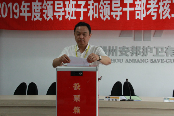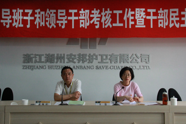 根据集团公司党委《关于做好2019年度子公司领导班子和领导干部年度考核工作的通知》要求,5月22日上午,湖州安邦护卫公司召开2019年度领导班子和领导干部考核工作暨干部民主推荐会。会议由公司党委书记、董事长、总经理莫继权同志主持,公司党委班子、中层干部及行政人员参加会议,集团公司组织人事部部长王萍等一行四人到会参加考核和推荐。