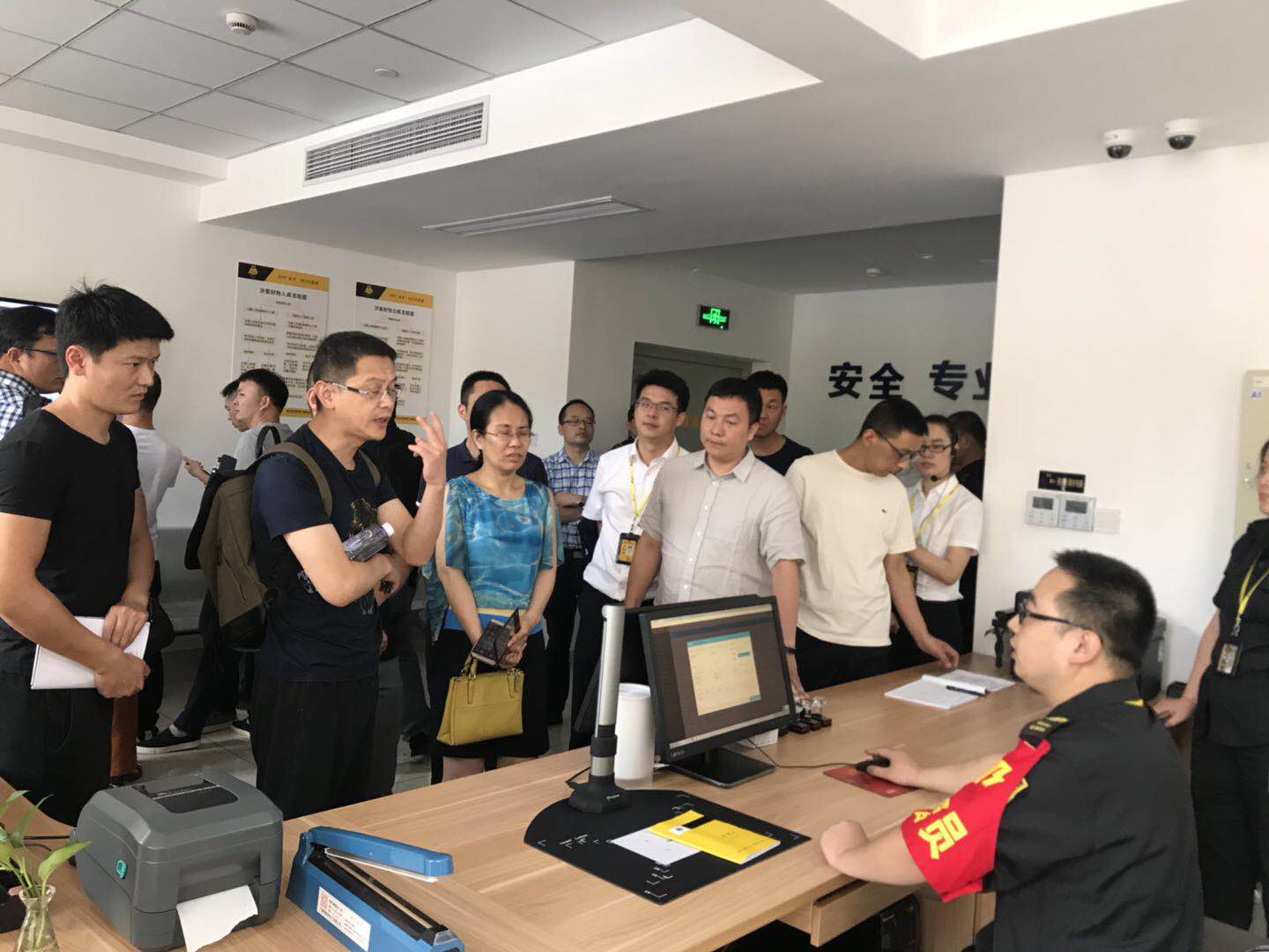 7月24日,温州市公安局、温州安邦护卫一行25人到湖州安邦护卫公司就涉案财物管理进行实地考察、座谈。座谈前,在湖州公司党委书记、董事长、总经理莫继权的陪同下参观了涉案财物管理中心各功能保管区域。