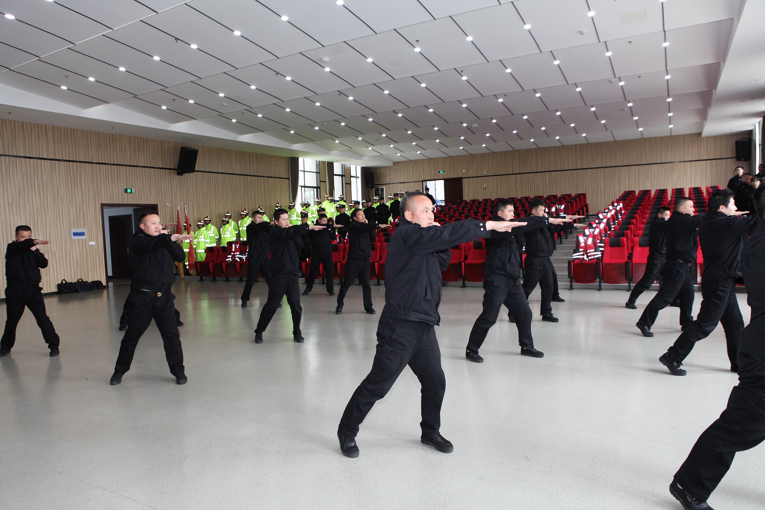 台州安邦护卫应急救援支队进行军事队列汇操、擒敌格斗、应急救援绳索使用等技能展示,展现专业素质和队伍风貌。