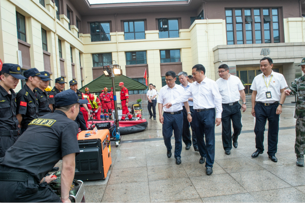 6月10日上午,湖州市委书记马晓晖,市委常委、常务副市长杨六顺以及市委秘书长钱仲良等领导一行,在市水利局局长罗安生,市应急管理局局长朱建祥的陪同下,到湖州公司视察应急救援物资储备及社会化应急救援队伍建设情况。