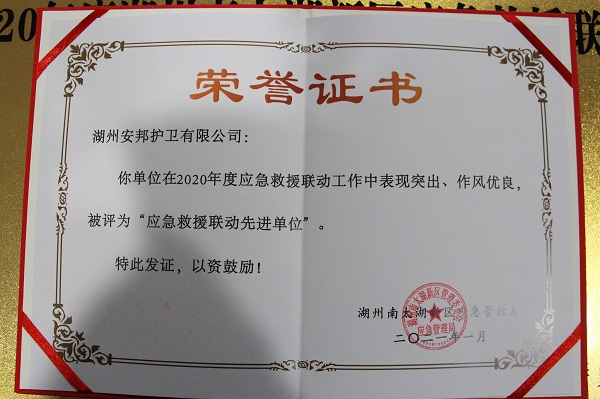 经过全体员工的共同努力,湖州线上赌博有限公司被湖州南太湖新区应急管理局评为“应急救援联动先进单位”。