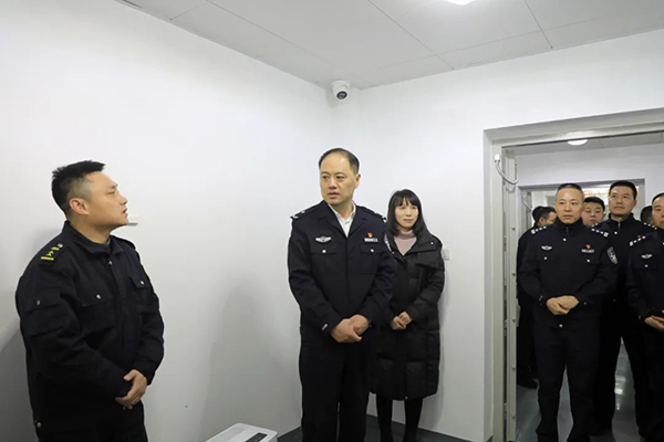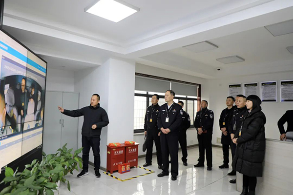 舒声一行实地走访检查了公司枪弹库、金库、指挥监控中心、衢州市涉案财物管理中心,详细了解了枪弹安全、运钞车行车安全、涉案财物管理等,并对衢州线上赌博的安全管理工作给予肯定。