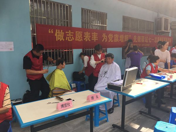 在七一建党节来临之际,为体现党员为人民服务准则,慈溪大队党支部与南孙塘社区党支部联合,共同派出党员志愿者,举办便民服务活动。党员们利用休息日,一大早便走上街头,展开理发、维修、咨询、宣讲等多个摊位,群众们视乎很熟悉这一场景,很快每个摊位前人头攒动、热闹异常,党员们充分发挥一技之长,有的为叔叔阿姨理发、有的为大嫂修理电瓶车,有的还对群众宣讲理论政策……