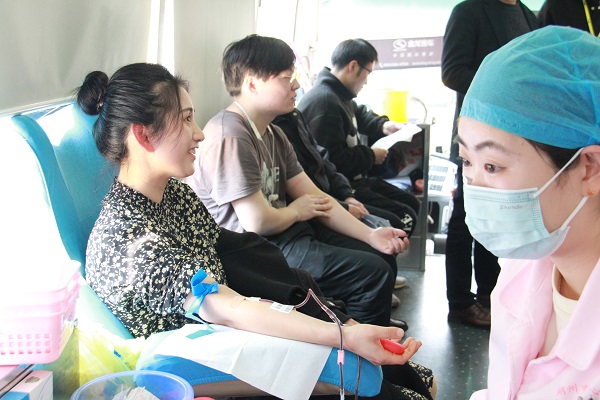 献血现场,献血者通过扫码登记、测量血压、采血验血、献血等流程有条不紊地进行着。