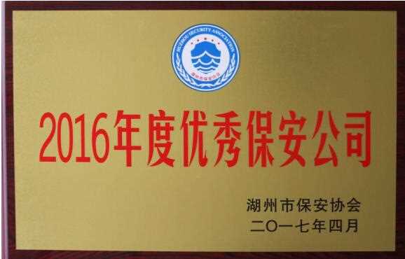 湖州公司荣获“湖州市2016年度优秀保安公司”荣誉称号