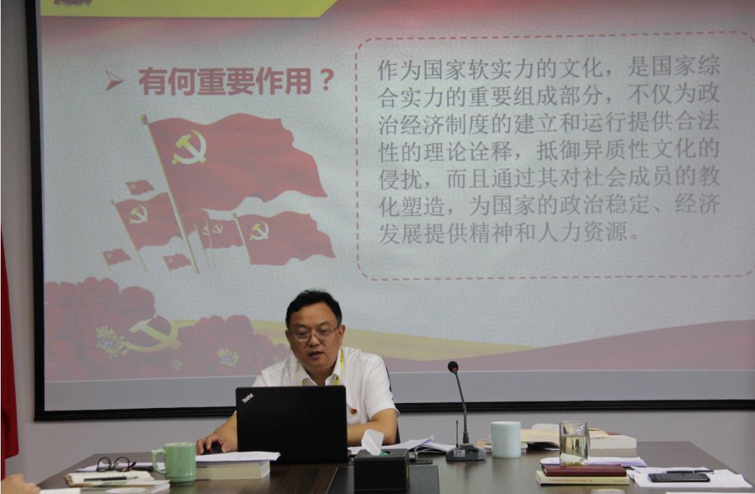 莫继权同志围绕意识形态安全这一主题,从维护意识形态安全的文化基础、打牢意识形态安全的经济基础、夯实意识形态安全的阶级基础、构建意识形态安全的领导核心、提升意识形态安全的国际传播能力等五个方面带领大家重点学习如何科学应对网络时代以群众为中心的意识形态安全意识。