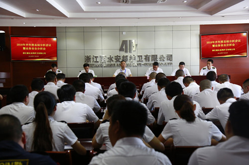 7月9日,浙江丽水安邦护卫有限公司2018年半年度总结分析会暨业务安全分析会顺利召开。会议的主要目的是全面总结2018年上半年各项工作开展情况,明晰和部署下半年思路和任务,更好地推进公司战略实施,确保完成全年既定目标。公司领导班子成员,各部门、大队、子公司中层干部共74人参加了会议。会议由党委委员陈彬主持。