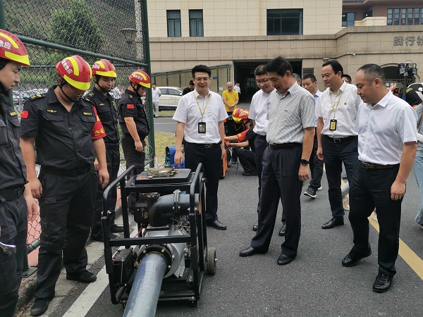 赵孟进一行实地参观了湖州公司应急救援物资储备库,观看了湖州公司应急队伍现场演练。赵孟进对湖州公司应急救援物资储备工作以及应急队伍建设给予了充分肯定。