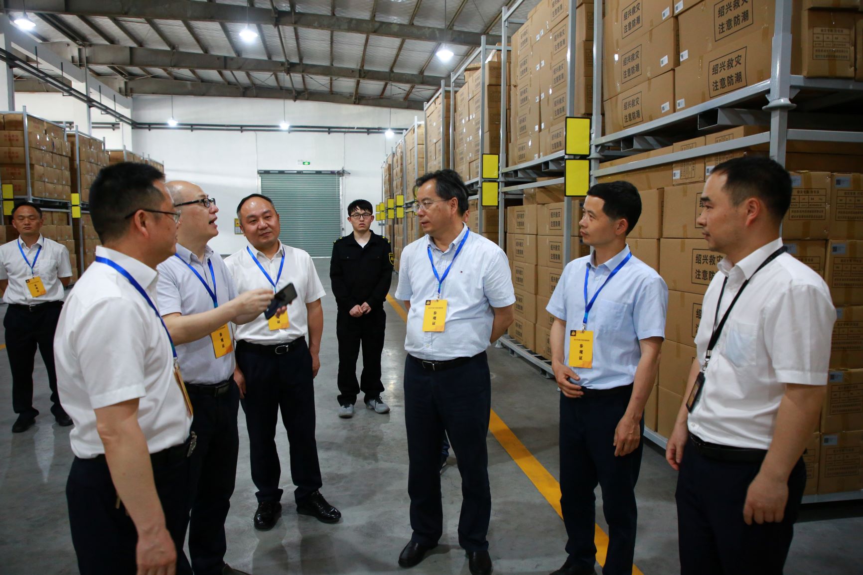 5月10日,浙江省粮食和物资储备局党组成员、副局长、一级巡视员鲍伟民,物资与能源储备处处长陆海萍,储备应急保障中心主任黄俊,绍兴市发改委二级调研员柳建军等一行到绍兴公司调研指导应急物资储备保障工作。集团党委副书记、总经理诸葛斌,副总经理童军杰,绍兴公司党委副书记、总经理汤华虎等陪同调研。
