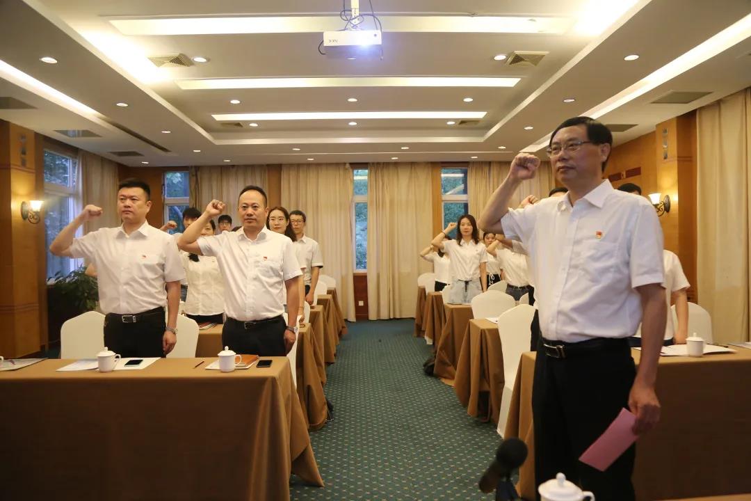 “我志愿加入中国共产党,拥护党的纲领,遵守党的章程,履行党员义务,执行党的决定……”在童林华同志的带领下,全体党员右拳高擎、神情庄重,面对鲜红的党旗郑重宣誓,抒发对党的忠诚,感受党的神圣,重温入党时的思想激情和奋斗追求,回顾入党宣誓时的庄严承诺和坚定决心,唤醒先进意识,增强党性意识,以更加饱满的热情发挥共产党员的先锋模范精神,永葆共产党员的政治本色。嘹亮的誓言徘徊在会议室中,深埋在每一位党员的心中。