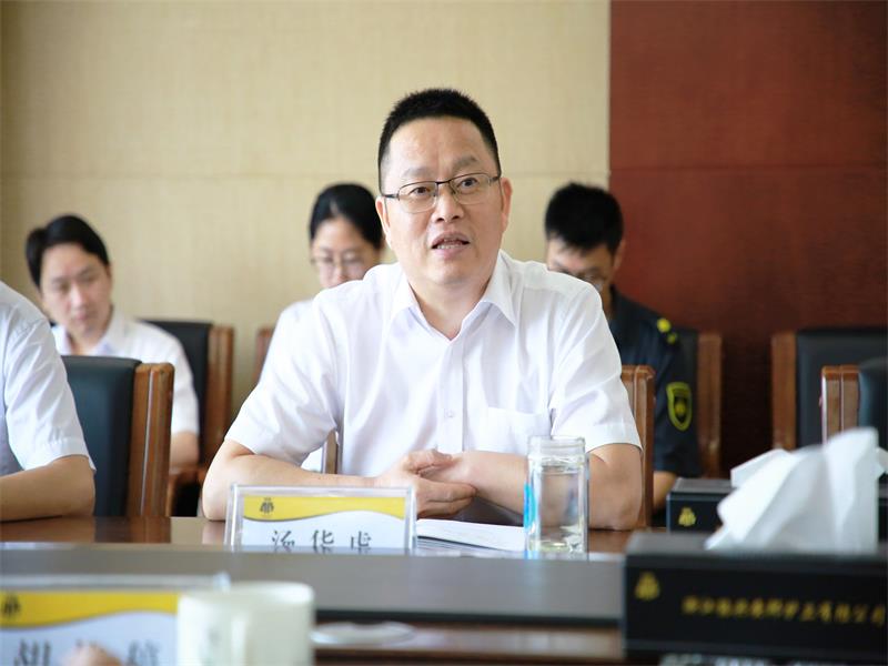 7月23日,柯桥区大数据发展管理中心主任黄伟祥、管理中心副主任胡伟稿、翁杰和信息建设科副科长朱国锋莅临绍兴线上赌博调研指导公司公共安全业务。公司党委书记、董事长胡秀荣,党委副书记、总经理汤华虎,相关部门负责人出席会议。