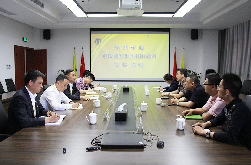 5月4日,重庆保安集团监事长孙世昌、重庆市守神安全技术防范有限公司总经理罗东一行6人,在浙江线上赌博科技服务有限公司副总经理叶飞的陪同下来到湖州公司调研。