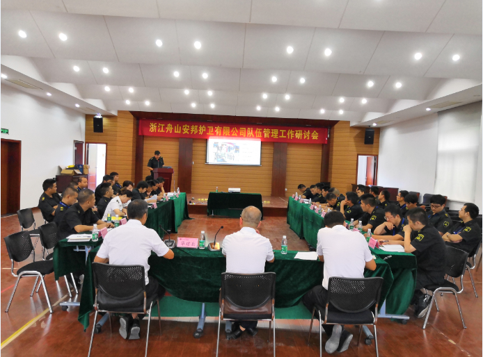 9月16日,舟山安邦公司队伍管理工作研讨会在北蝉基地办公楼三楼会议室胜利召开。公司领导班子、副中队长以上人员及各中队班组长代表参加了研讨会。会议由公司党委委员、纪委书记华建兵主持。