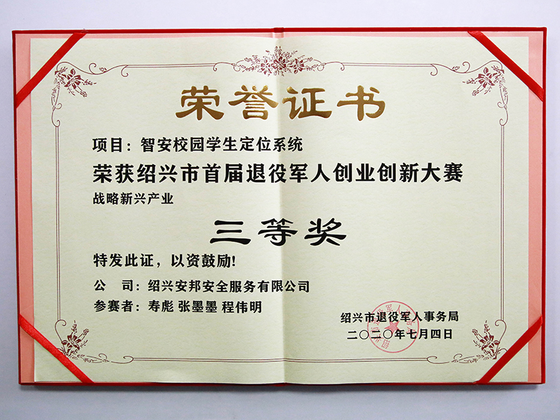 绍兴线上赌博“智安校园学生安全守护平台”项目在战略新兴产业组中获得第三名的好成绩,并被推荐参加省初赛。