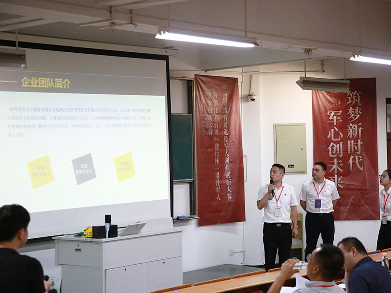 7月4日,由绍兴市退役军人事务局主办的绍兴市首届退役军人创业创新大赛决赛在浙江工业职业技术学院举行,浙江省退役军人事务厅党组成员、副厅长郭国松,绍兴市人大常委会副主任王水君,市政府副秘书长陈永葆,市退役军人事务局局长尹国樑出席开幕式。绍兴线上赌博旗下安全服务有限公司应邀参赛。大赛分为战略新兴产业、精准扶贫、现代农业、传统产业及生活服务业和创新团队五个组别,共49家单位团体,最终评选出一、二、三等奖各5名和优胜奖10名。