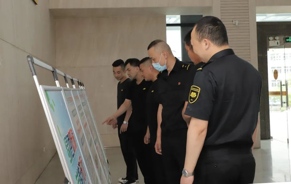 6月13日,浙江嘉兴安邦护卫有限公司一楼大厅,队员们驻足在“2022年全国节能宣传周暨低碳日”宣传展板前认真观看学习。