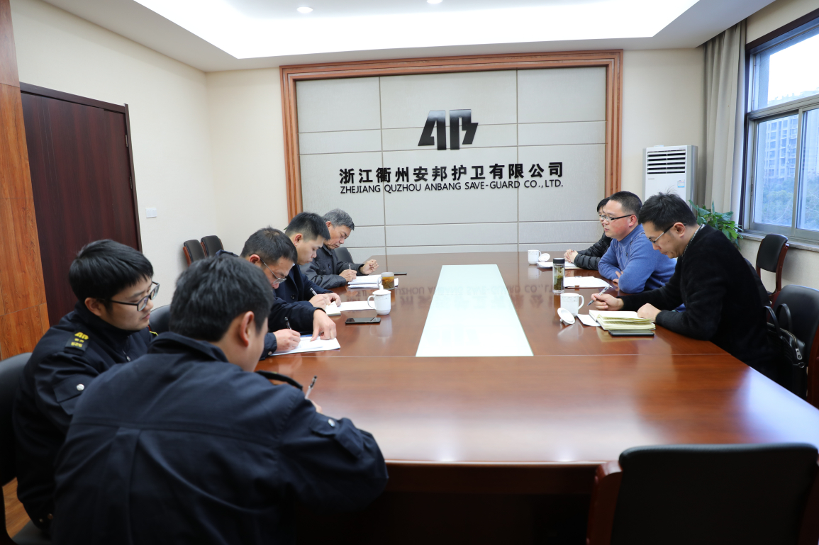 1月10日,集团安全生产管理考核小组来到浙江衢州安邦护卫有限公司开展2019年度安全生产考核及年末岁初安全大检查。公司党委书记、董事长、总经理张淑芬,党委副书记、纪委书记郭启明,党委委员、副总经理郑胜,党委委员、总经理助理琚苏炳,安全保卫部经理吴小奇全程陪同。