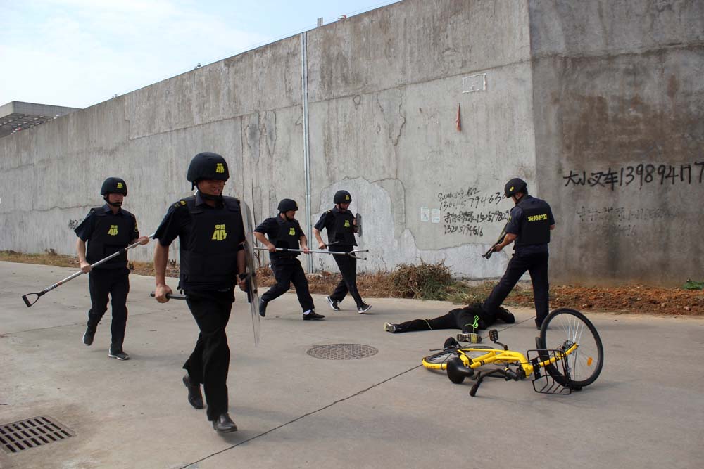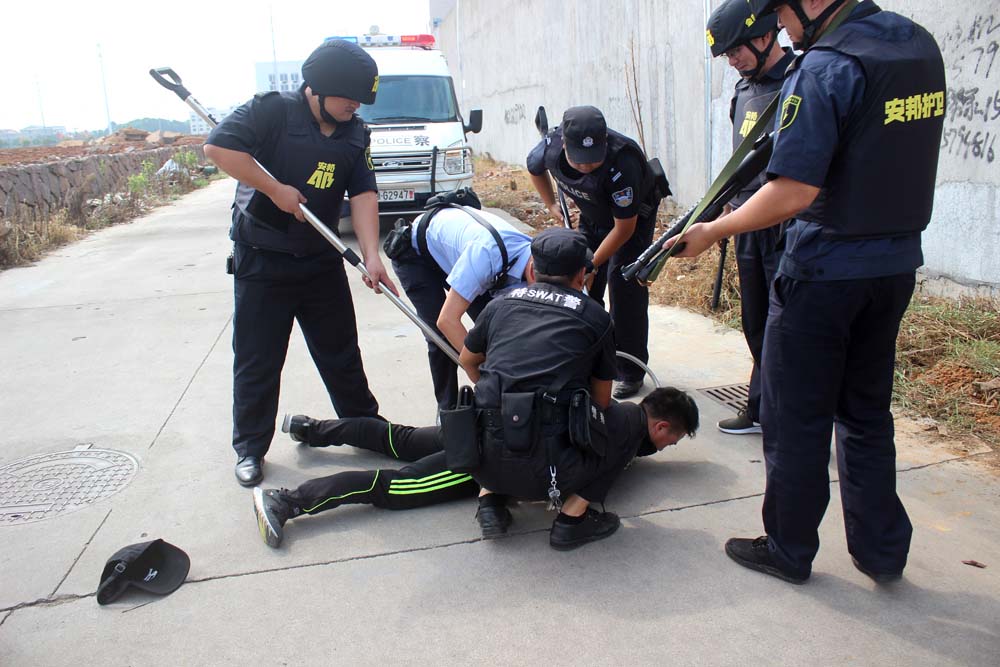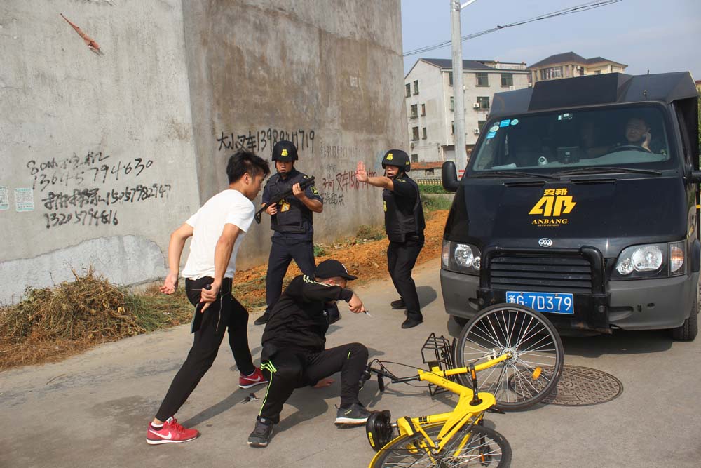 此次演练模拟安邦运钞车执行任务途中,遭遇歹徒撞车截停并试图实施抢劫,公司队员勇敢上前与持刀歹徒展开搏斗,最后被制服并移交给前来处警的民警。