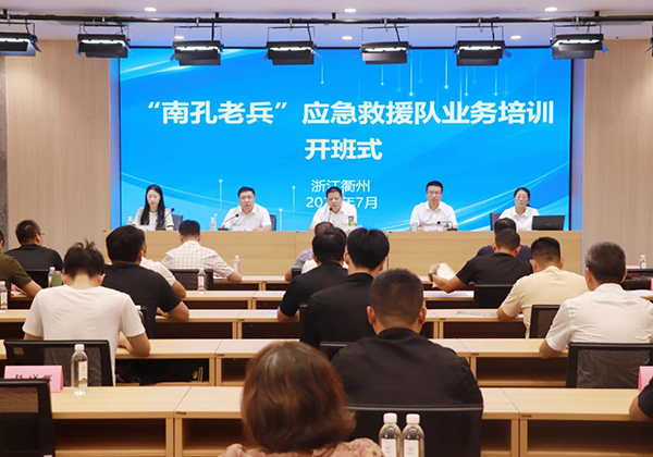 7月23日上午,“南孔老兵”应急救援队培训正式开班,衢州市退役军人事务局党组成员、副局长郑国平,浙江衢州线上赌博有限公司党委委员、副总经理宋俊强,衢州市退役军人事务局退役军人服务中心主任王冲,衢州市军创企业家协会秘书长林璐,衢州市安邦职业技能培训学校有限公司校长姜城华出席本次培训开班仪式,仪式上领导们对本次培训提出了希望与要求,为本次培训指明了前进的方向,也为“南孔老兵”应急救援队赋予了新的历史使命。