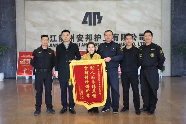 3月27日,一位女士将一面“助人为乐传真情 雷锋精神谱新章”的锦旗送到衢州线上赌博党委委员、副总经理郑胜,安邦保安公司副总经理金国飞手中。原来,在3月20日,该女士带着父亲去医院看病,父亲不慎将女儿给自己新买的手机弄丢了,万分着急之下,求助于安保人员。中队长黄毛头立即上前了解情况,经向领导汇报批准后第一时间查看监控录像,与其他安保人员一起根据相关线索全程追踪,历时3小时找回手机,物归原主。
