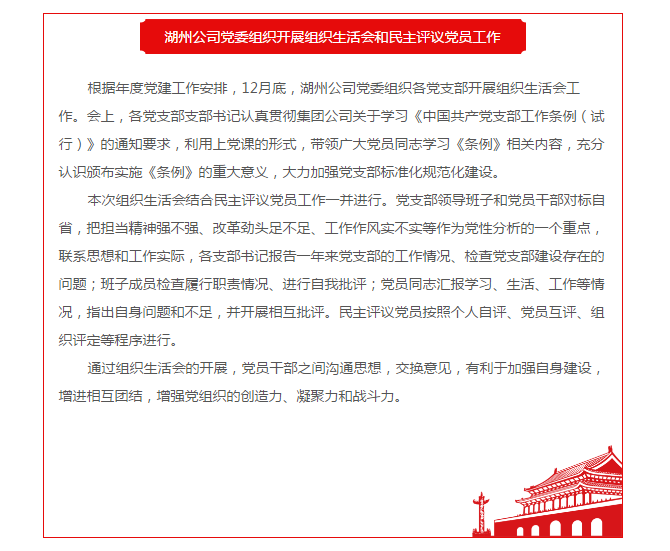 湖州公司党委组织开展组织生活会和民主评议党员工作