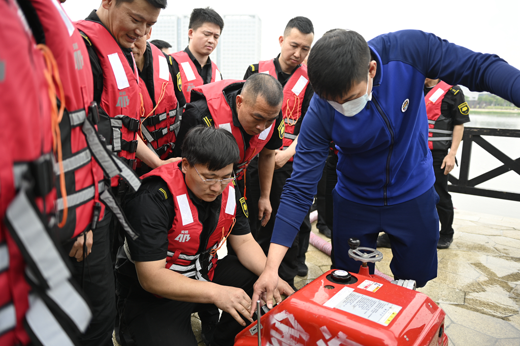 培训内容包括橡皮艇使用讲解和拆解操练,抽水泵和室外照明设备使用讲解和操练,单兵装备的使用讲解,绳索的打结方法、抛绳等讲解与操练,应急物资运输流程操练,抢险救援时的安全注意事项,应急救援指挥官系统的讲解与操练。