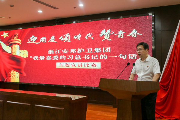 集团党委书记、董事长吴高峻为本次比赛致辞,他表示,“8090”新时代理论宣讲工作是学习宣传贯彻习近平新时代中国特色社会主义思想的创新举措,新时代安邦护卫青年有理想、有拼劲、有活力,要勇于担当作为、坚持苦干实干,努力弘扬安邦主旋律,发出安邦好声音,传递安邦正能量,展示安邦新形象,为服务新时代“重要窗口”建设作出更大贡献。