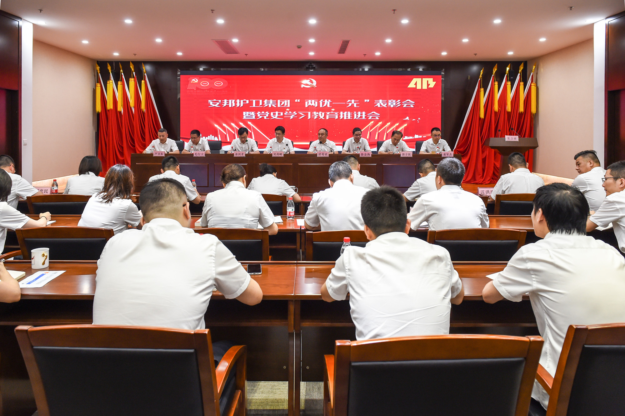 会议以视频方式召开,集团领导班子成员,集团总部全体员工;科技公司班子成员、党史学习教育部门负责人,受表彰人员,在主会场参加会议。各子公司班子成员,党群部门、组织部门、纪检部门和党史学习教育牵头部门有关人员,全省国资国企系统和集团党委表彰的“两优一先”单位和个人,下属党组织书记等在分会场参加会议。
