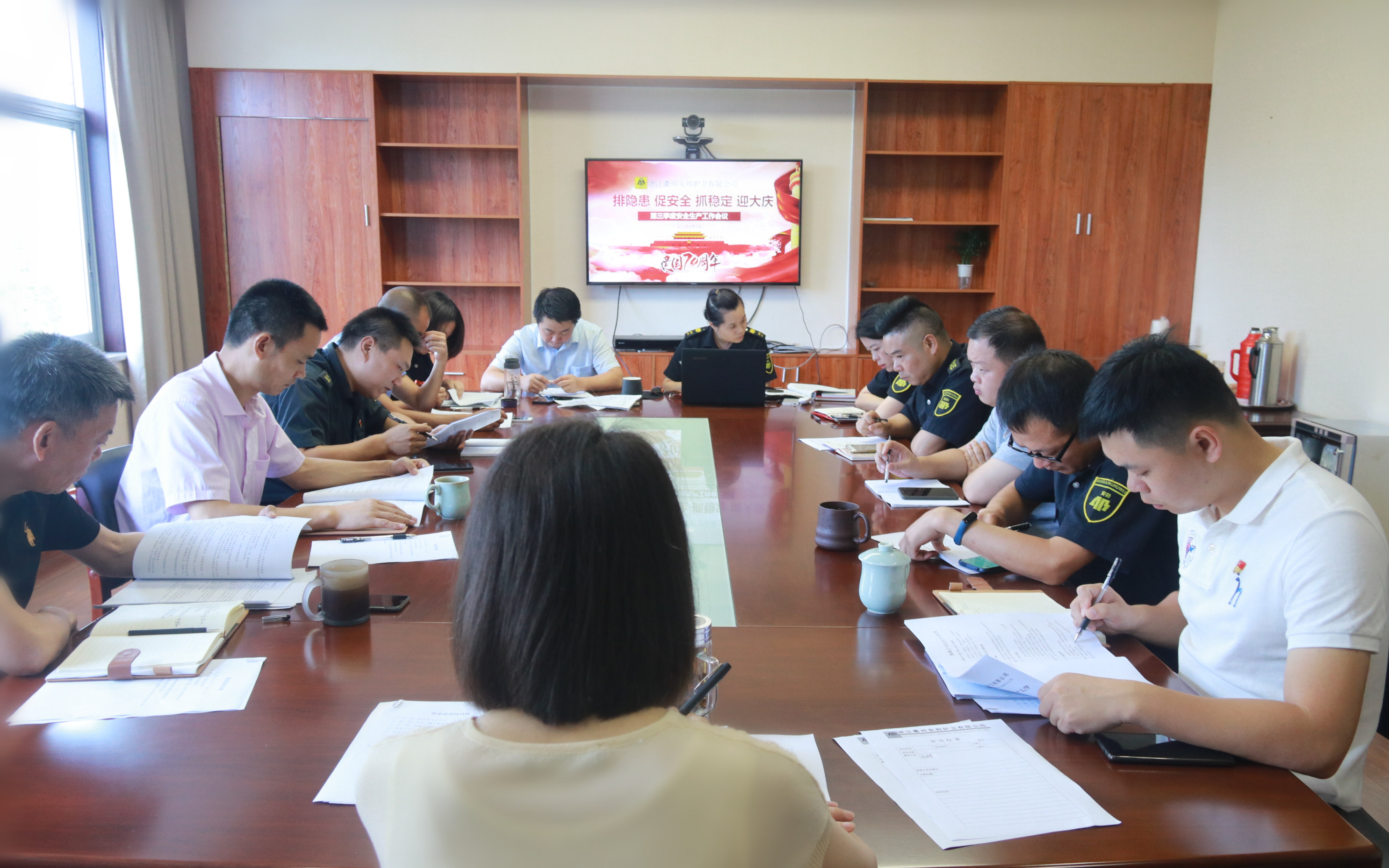 为进一步强化落实公司安全生产主体责任,狠抓安全制度落实,近日,浙江衢州安邦护卫有限公司在二楼会议室组织召开了“排隐患 促安全 抓稳定 迎大庆”为主题的第三季度安全生产工作会议,党委班子,各子公司、部门负责人参加了此次会议。