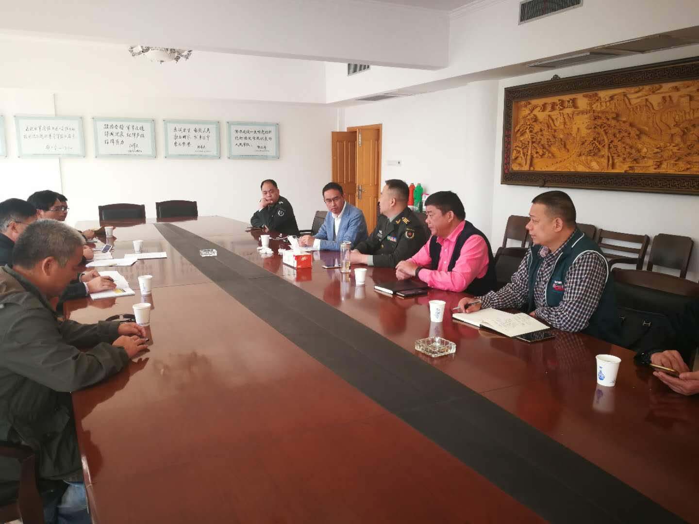 10月25日上午,金华安邦公司总经理方顺富一行3人到磐安县人武部,就公司继续租赁弹药库事宜与磐安县人武部、县国资办进行协商并达成共识,为公司磐安金库继续发挥作用提供有力保障。