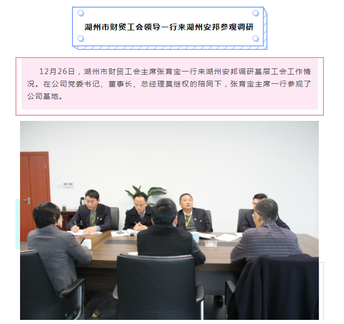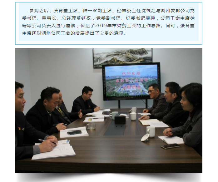 湖州市财贸工会领导一行来湖州安邦参观调研