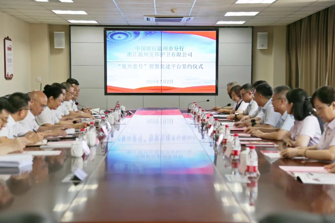 7月2日,浙江温州线上赌博有限公司与中国银行温州市分举行“复兴壹号”智慧党建平台签约仪式。公司党委书记、董事长方芳,党委副书记、纪委书记余建东,党委委员、副总经理叶世勇及相关部门负责人参加。