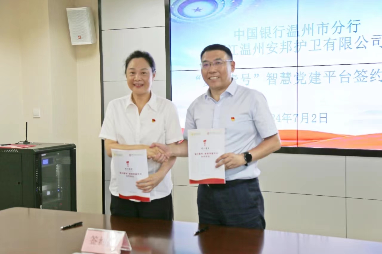 温州公司与中国银行温州市分行举行“复兴壹号”智慧党建平台签约仪式